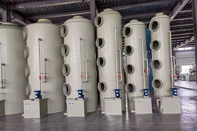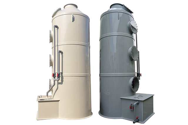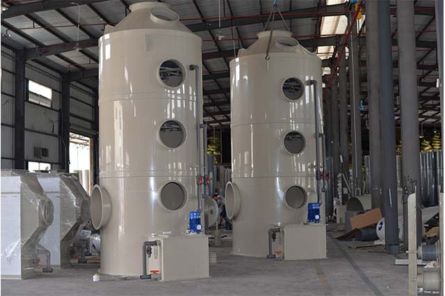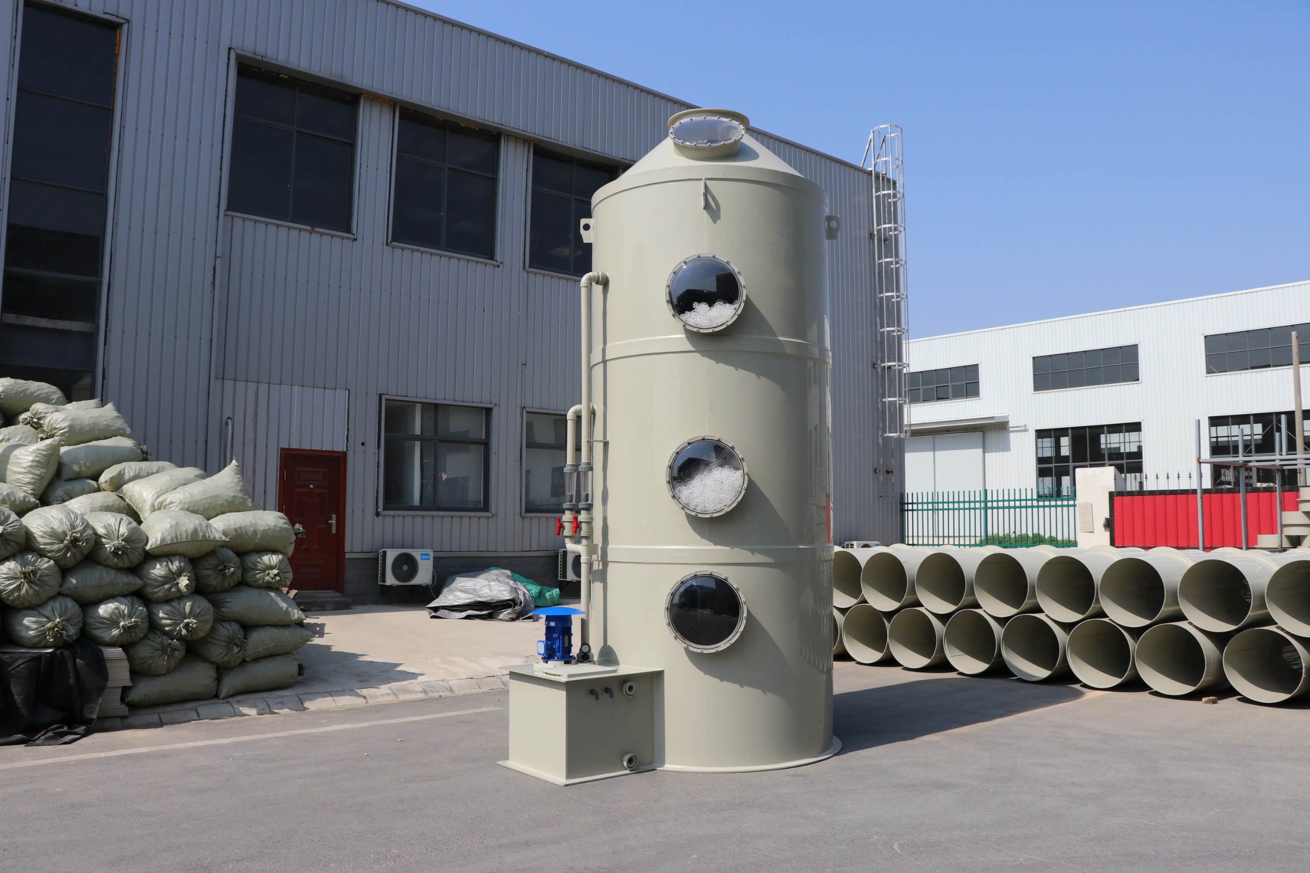 PP噴淋塔也叫做PP洗滌塔、酸霧凈化塔--酸堿廢氣處理設(shè)備;噴淋塔工作原理:廢氣由風(fēng)管引入凈化塔,經(jīng)過填料層,廢氣與吸收液進(jìn)行氣液兩相充分接觸吸收中和反應(yīng),廢氣經(jīng)過凈化后,再經(jīng)除霧板脫水除霧后由風(fēng)機(jī)排入大氣。廢氣達(dá)到地方排放標(biāo)準(zhǔn)的排放要求。