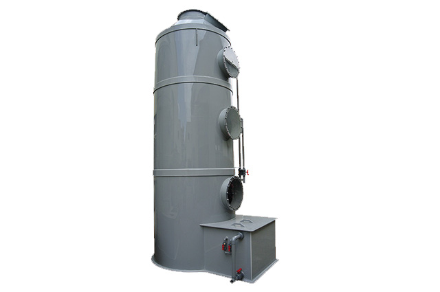 PPs洗滌塔結(jié)構(gòu):洗滌塔由除霧層、噴淋層、填料層、風(fēng)機(jī)、風(fēng)管、塔體、供水箱、供水泵等部分組成。洗滌塔系統(tǒng)的風(fēng)機(jī)組將收集到的廢氣吸入酸霧PPs阻燃洗滌塔內(nèi),流經(jīng)填料層段(氣/液接觸反應(yīng)介質(zhì)),讓廢氣與填充物表面流動(dòng)的藥液(洗滌液)充分接觸,以吸附廢氣中所含的酸性或堿性污物,廢氣經(jīng)過洗滌后,達(dá)標(biāo)排放。