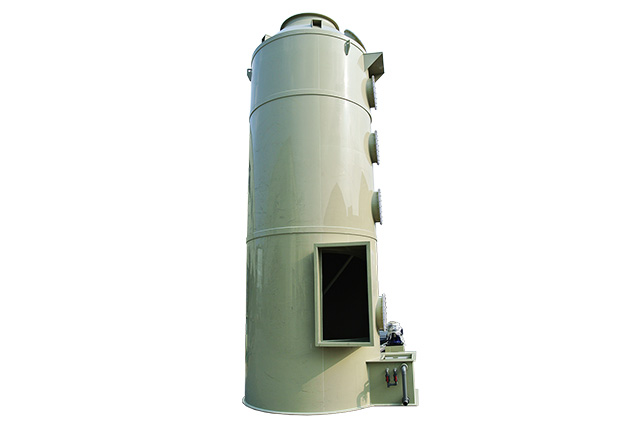 旋流塔是處理粉塵設備,結構與噴淋塔結構同樣,主要是由格柵板填料改變?yōu)樾魅~片、噴淋系統。右下往上,分別是:順時針葉片加噴淋系統;旋流塔內設計多套旋流裝置,經過初級凈化的煙氣旋轉上升,由于旋流裝置設計合理,旋流氣動裝置具有導向和接力作用,利用煙氣自身的動能產生氣動旋流,氣液兩相充分接觸,進行傳質反應,逆時針葉片加噴淋系統,起到一個順逆兩相氣體相沖變化,從而使粉塵流入塔底;大小頭除霧層,起到一個不能讓水份跟隨氣體流出排放。
