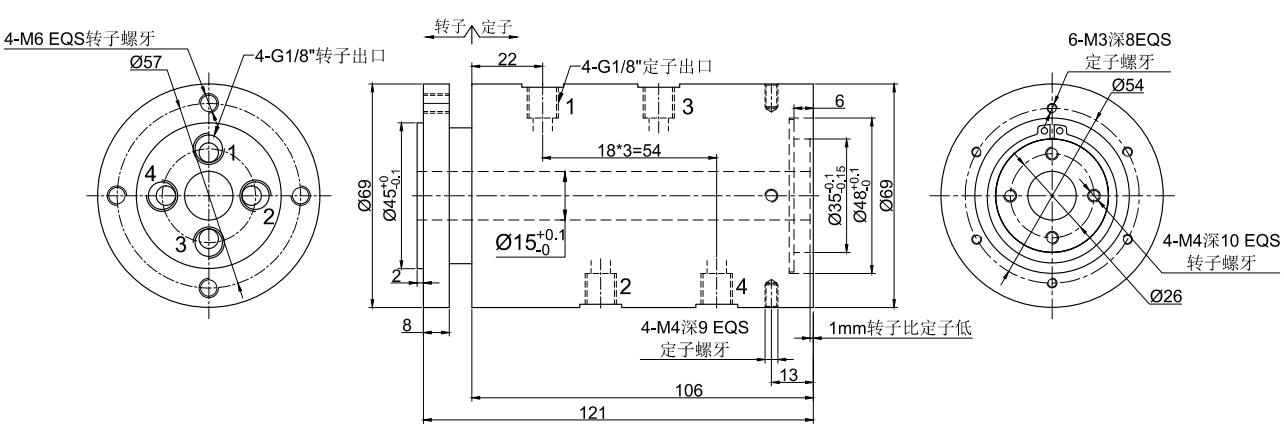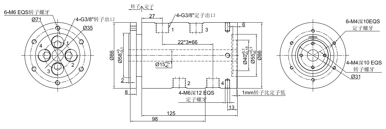 GJ4015系列 (中空15mm, 4進(jìn)4出, 中空氣液旋轉(zhuǎn)接頭,氣滑環(huán),液壓滑環(huán))