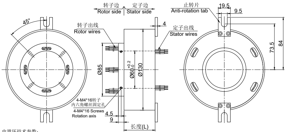 GT60130系列整體式精密導(dǎo)電滑環(huán),主要應(yīng)用于360度連續(xù)旋轉(zhuǎn)且需要保證電源,信號(hào)不能中斷的場(chǎng)合:多用于干燥設(shè)備(如烘干機(jī)、干燥滅菌設(shè)備、糧食烘干機(jī)等)、流延膜設(shè)備、三相交直流儀表檢定裝置、游樂(lè)設(shè)施(如兒 童乘騎系列游藝機(jī)、旋轉(zhuǎn)木馬)、研磨拋光機(jī)、起重機(jī)、安檢專用設(shè)備、電影設(shè)備等任意需要360°旋轉(zhuǎn)導(dǎo)電或傳輸各種控制信號(hào)的裝置。