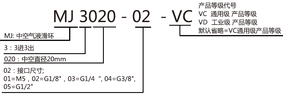 MJ3020氣/液滑環(huán)選型表