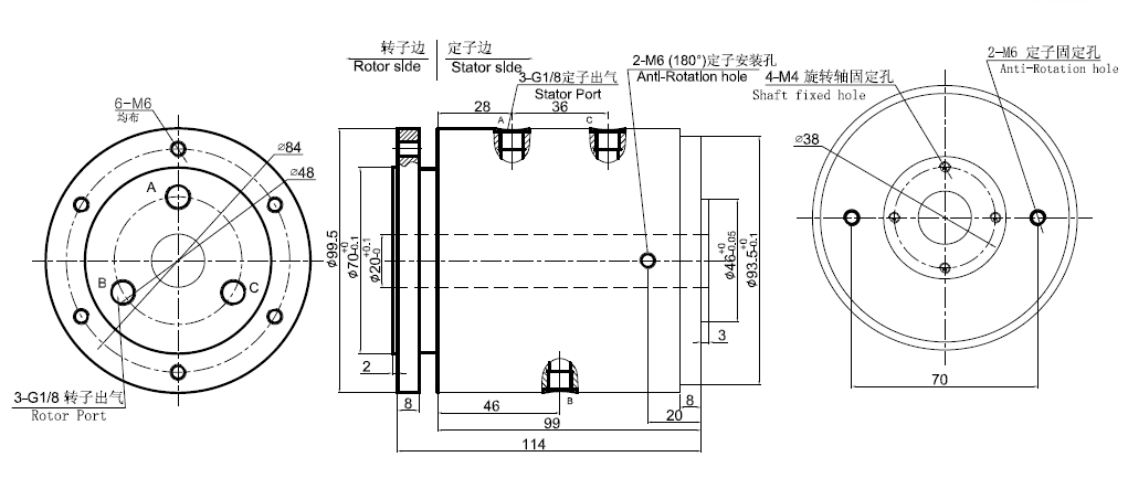 MJ3020系列 (中空20mm, 3進3出, 中空氣液旋轉接頭,氣滑環(huán),液壓滑環(huán))