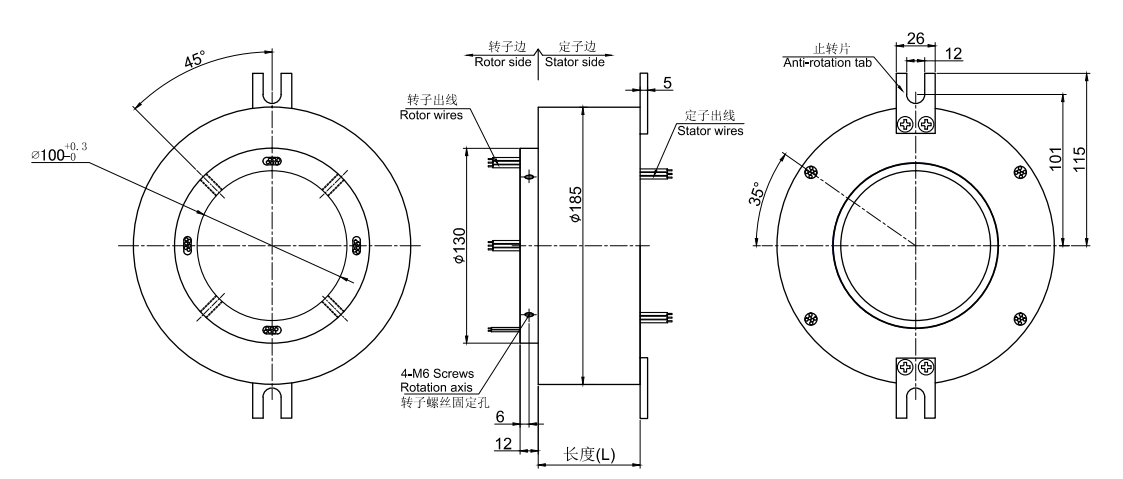 MT100185系列整體式精密導(dǎo)電滑環(huán),主要應(yīng)用于360度連續(xù)旋轉(zhuǎn)且需要保證電源,信號不能中斷的場合:多用于加熱滾筒、自動焊接設(shè)備、金屬表面加工設(shè)備、擠出流延復(fù)合設(shè)備、靜態(tài)扭矩傳感器、壓力變送器、工業(yè)機器 人、電線(網(wǎng)線)電纜生產(chǎn)設(shè)備、電子(紡織品)質(zhì)量檢測儀器、機器人生產(chǎn)線、汽車涂裝和裝配線的車間設(shè)備改裝、加速度傳感器、研磨分散機、旋轉(zhuǎn)餐桌等任意需要360°旋轉(zhuǎn)導(dǎo)電或傳輸各種控制信號的裝置。