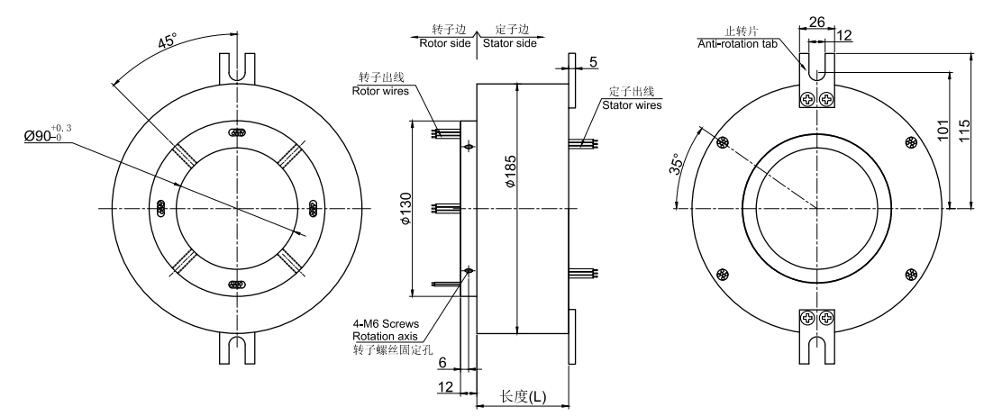 過孔式導(dǎo)電滑環(huán)是目前工業(yè)滑環(huán)里面性價(jià)比最高,最暢銷的一個(gè)系列產(chǎn)品,主要應(yīng)用于360度連續(xù)旋轉(zhuǎn)且需要保證電源,信號(hào)不能中斷的場(chǎng)合:如各種雷達(dá),安防設(shè)備,娛樂設(shè)備,各種機(jī)器人、機(jī)械手,各種浮空器,各種風(fēng)力發(fā)電設(shè)備吹瓶機(jī),燈檢機(jī),各種轉(zhuǎn)臺(tái),游樂游藝設(shè)備,虛擬3D,VR設(shè)備, 車載衛(wèi)星天線,船載衛(wèi)星電線,電纜卷筒,擦窗機(jī)設(shè)備,旋轉(zhuǎn)餐桌,旋轉(zhuǎn)舞臺(tái),旋轉(zhuǎn)屏幕,旋轉(zhuǎn)餐廳,電動(dòng)工程機(jī)械,最新的VR模擬仿真設(shè)備等。;