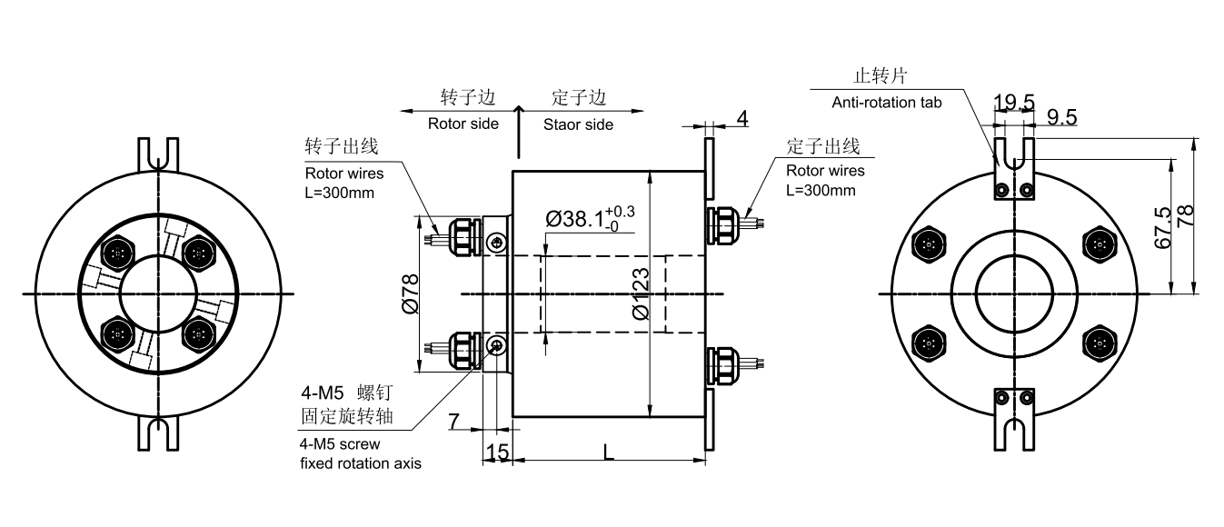NT038系列是一款通孔直徑為為38.1mm整體式精密導(dǎo)電防水滑環(huán),主要應(yīng)用于360度連續(xù)旋轉(zhuǎn)且需要保證電源,信號(hào)不能中斷的場(chǎng)合:多用于繞線機(jī)、激光掃描儀、管內(nèi)攝影機(jī)、展覽/顯示設(shè)備、售餐機(jī)滑環(huán)、ccd視覺檢測(cè)設(shè)備、 智能視覺系統(tǒng)、自動(dòng)化組裝機(jī)、旋轉(zhuǎn)LED燈、貼標(biāo)機(jī)、實(shí)驗(yàn)設(shè)備、生物檢測(cè)儀器等任意需要360°旋轉(zhuǎn)導(dǎo)電或傳輸各種控制信號(hào)的裝置。